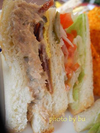三明治夾著培根吃起來像肉乾 吐司部分偏硬 整體算普普