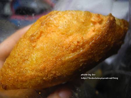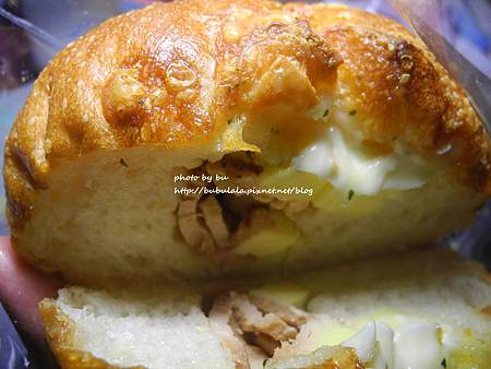 小起司塊放入麵包中,0.5cm雞肉片,裹上酸中帶點甜滋滋卡達醬,不僅爽口又溜嘴,十分喜歡!!!