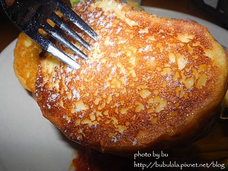 金黃烤焦外皮配著濃濃焦糖香味 灑上淡淡糖粉 吃起來的口感很爽口