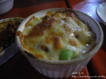 所謂七內容物:酥皮濃湯、義式焗烤麵、奶油餐包、義式海鮮焗烤洋芋、義大利肉醬烤黃金蛋、黑森林巧克力慕斯蛋糕