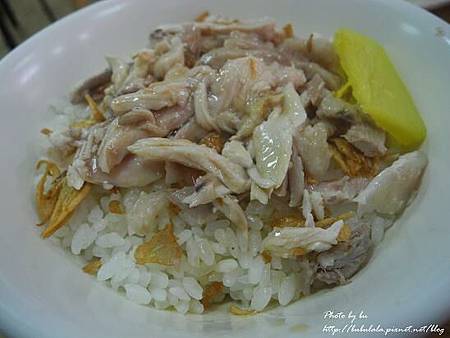 軟Q白飯,淋上醬油、豬油,灑上油蔥具有提香的功能,還有舖滿許多火雞肉絲。