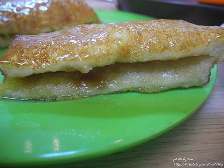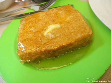 抹上奶油再放入烤箱烤到金黃色般酥脆,在淋上煉乳,