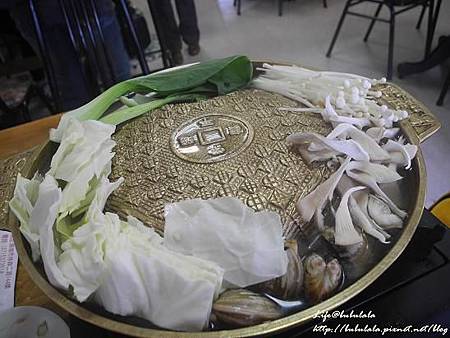 銅板上擺滿蔬菜及蛤蠣,心中有莫名開心 ^_^